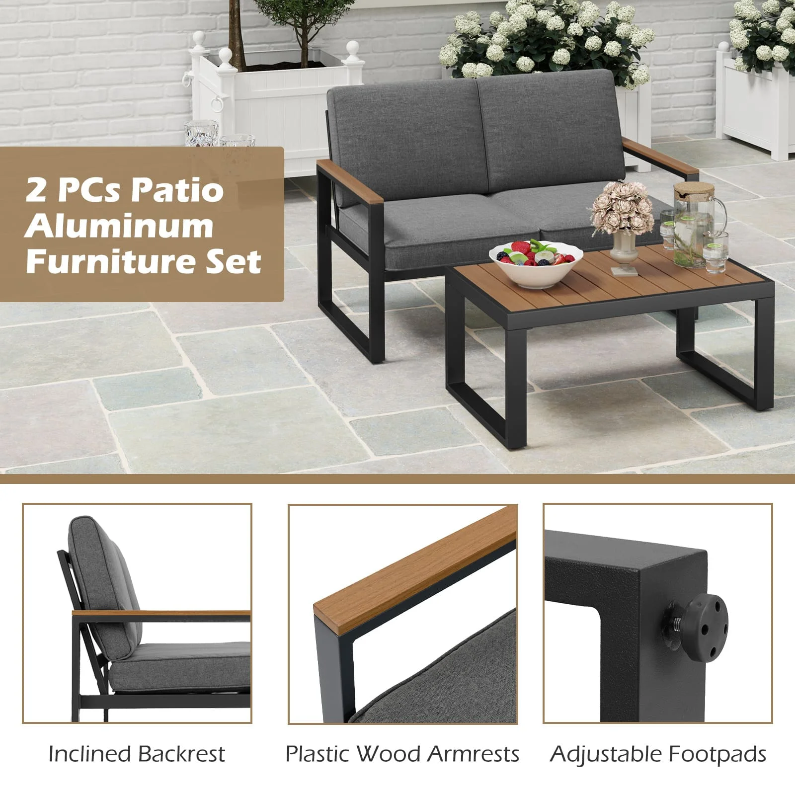 2-Piece Patio Aluminum Furniture Set, Outdoor Conversation Chairs with Cushions – Grey
