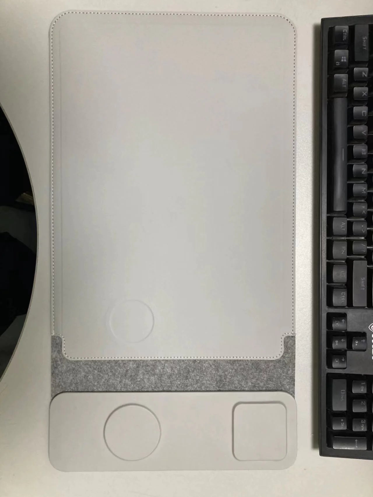 Revolutionize your workspace with this innovative 5-in-1 laptop sleeve. Not only does it protect your laptop during travel, but it also doubles as a wireless charging pad, desktop charging mat, and mouse pad. Its sleek design and multiple functionalities make it the ultimate accessory for the modern professional.