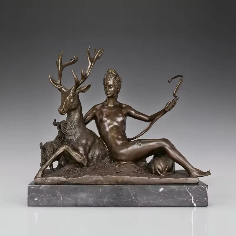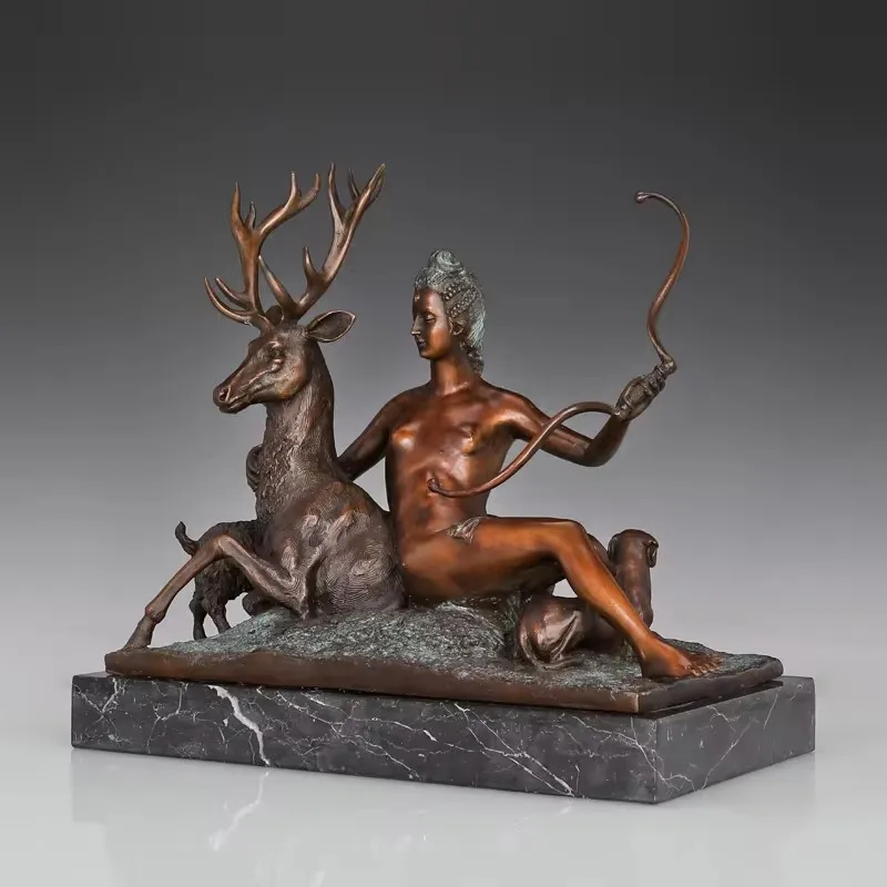 Bronze Artemis Statue – Greek Hunting Goddess Diana with Deer, Hot Cast Brass Home Décor Piece