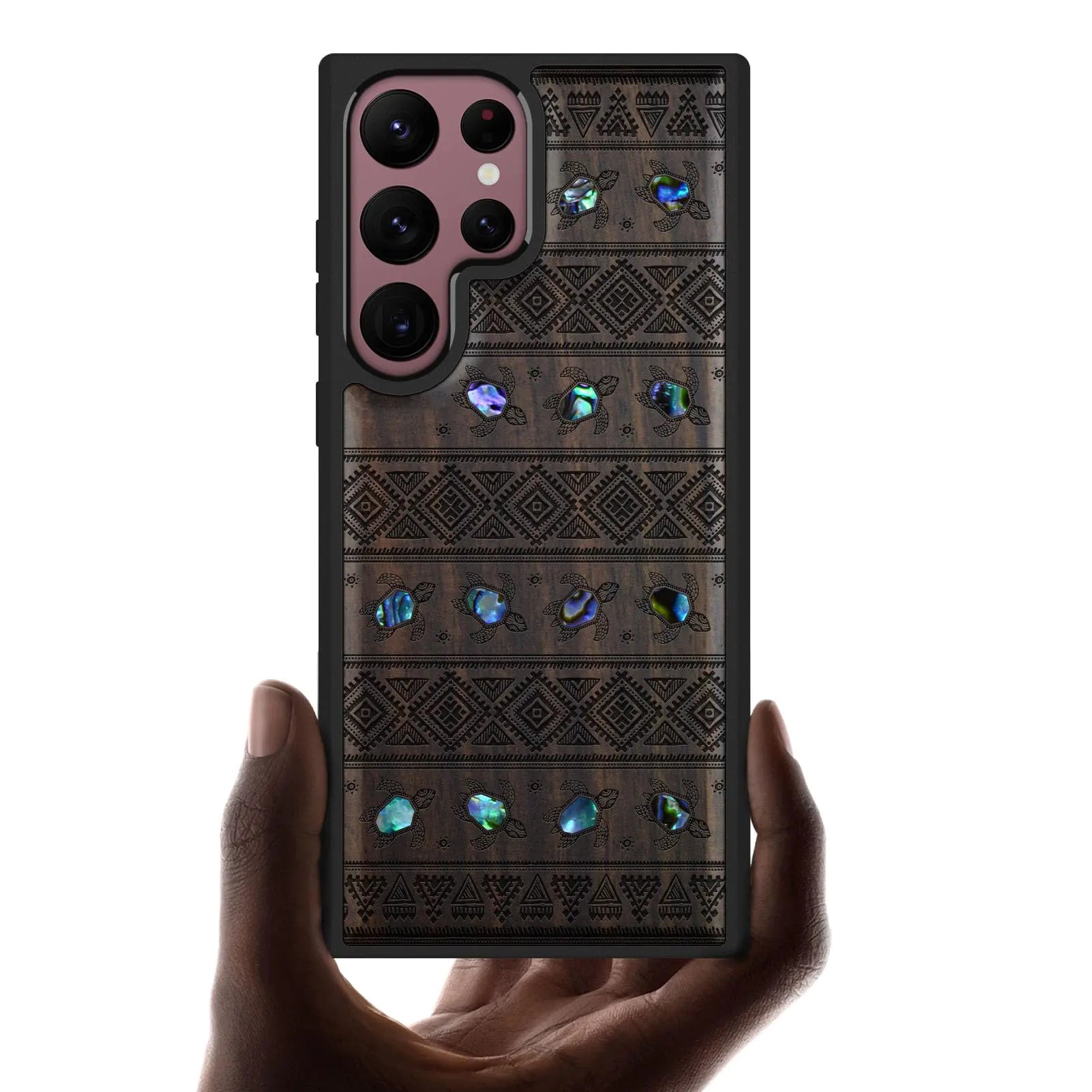 Carveit Designer Wooden Case for Samsung Galaxy S22 Ultra Case Cover [Wood Engraving & Shell Inlay] Compatible with Wireless Chargers Galaxy S22 Ultra Case (Sami Turtles-Blackwood)