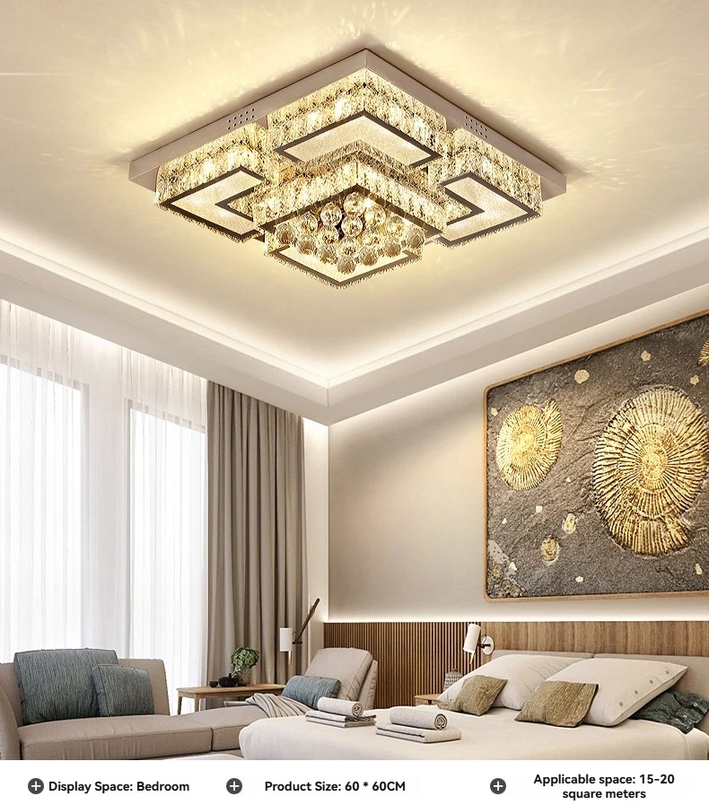 Elegant Modern Design: A sophisticated crystal ceiling light crafted from premium stainless steel and crystal, ideal for modern interiors.