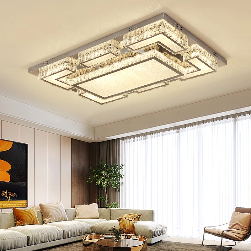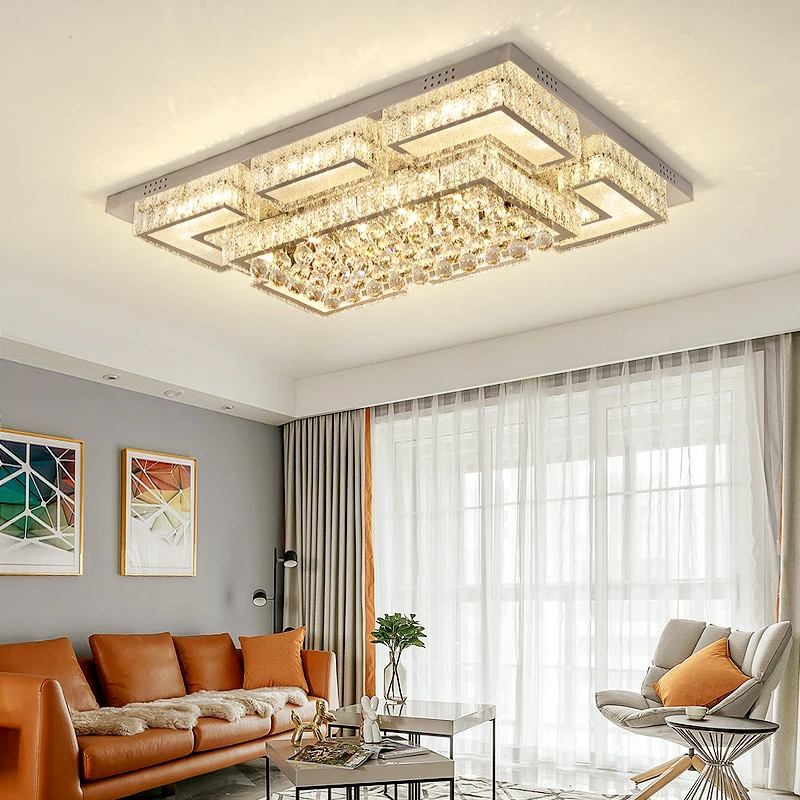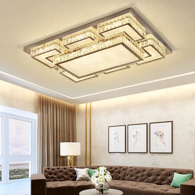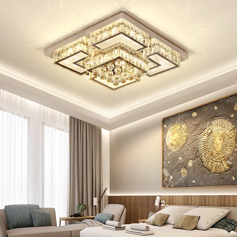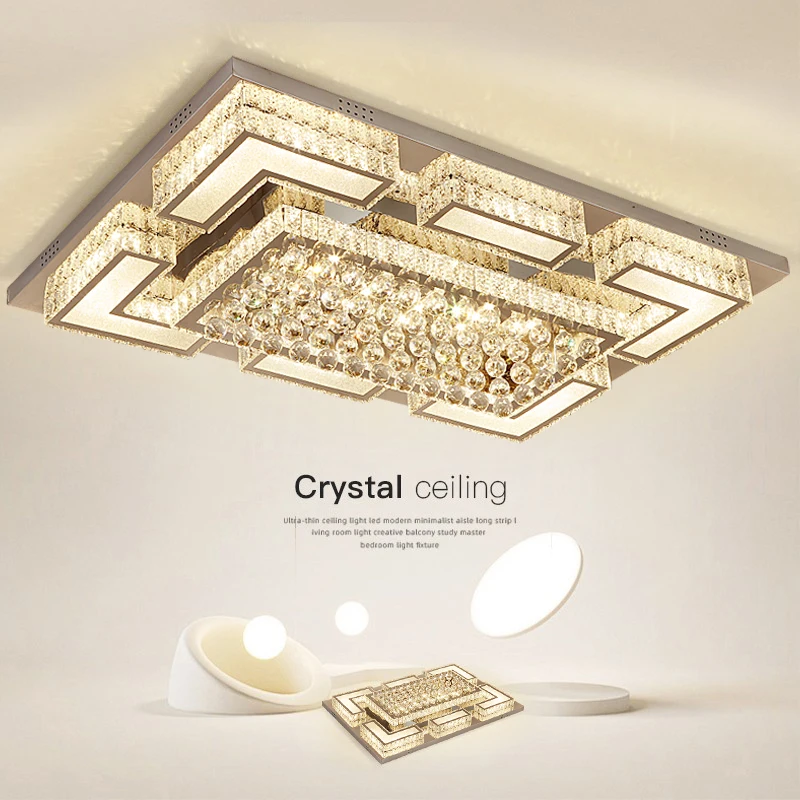Elegant Modern Design: A sophisticated crystal ceiling light crafted from premium stainless steel and crystal, ideal for modern interiors.