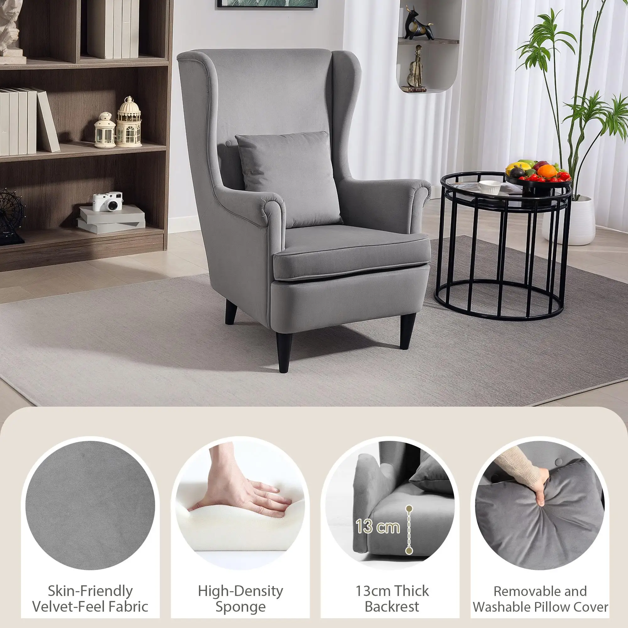 Sink into the luxurious comfort of the occasional chair, featuring a high-density sponge for long-lasting support. Upholstered in skin-friendly velvet for improved breathability, this armchair showcases a 70 cm high wingback design and a removable, washable pillow cover. Suitable as a lounge chair in the bedroom or a reading chair in the living room, it adds a stylish touch to any cosy corner.