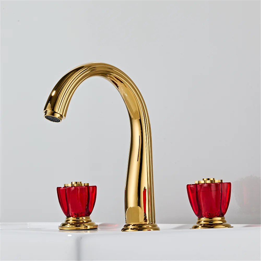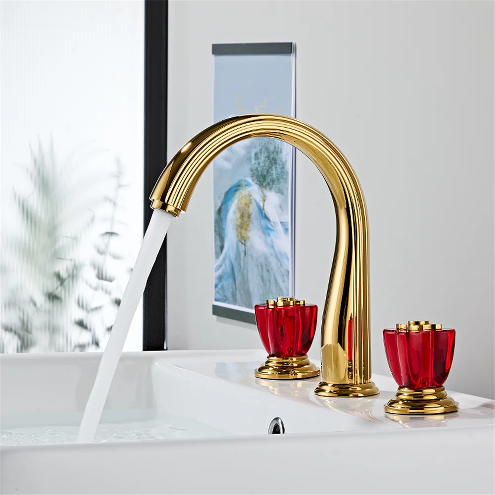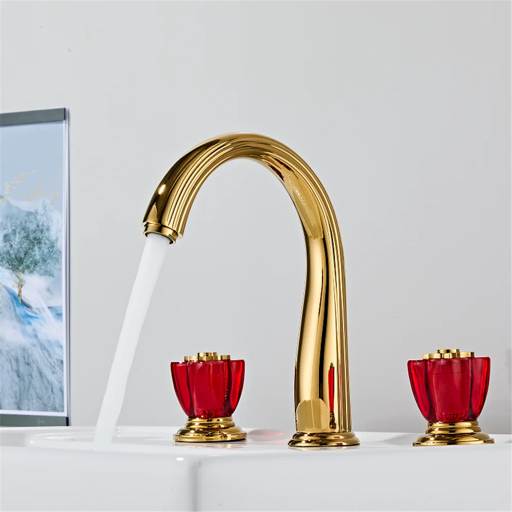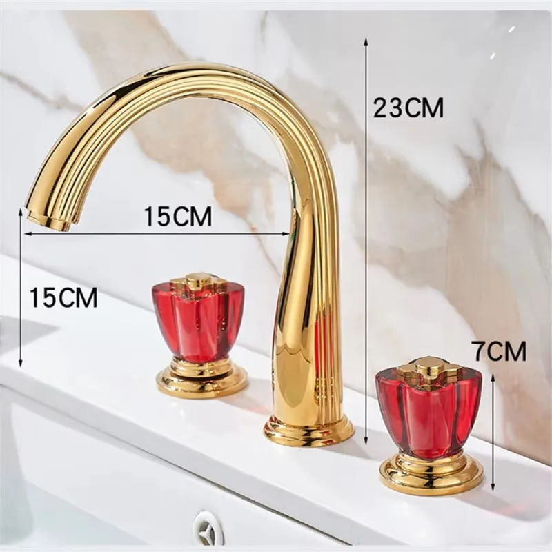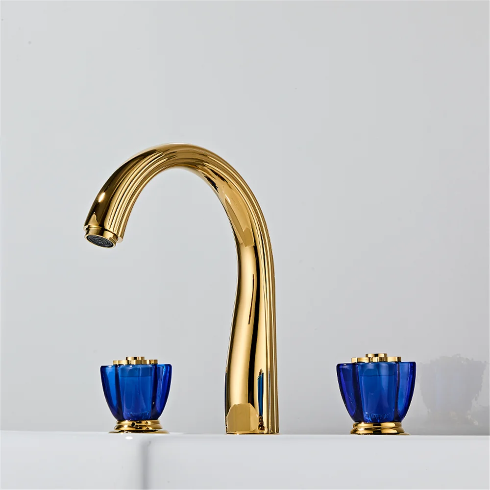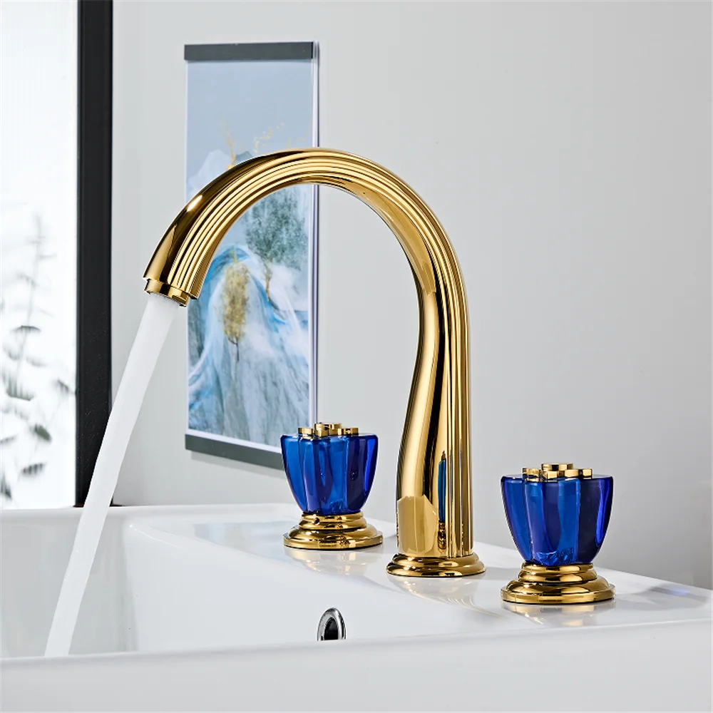 Gold Blue Crystal Faucet – 3-Hole Brass Bathroom Sink Mixer Tap