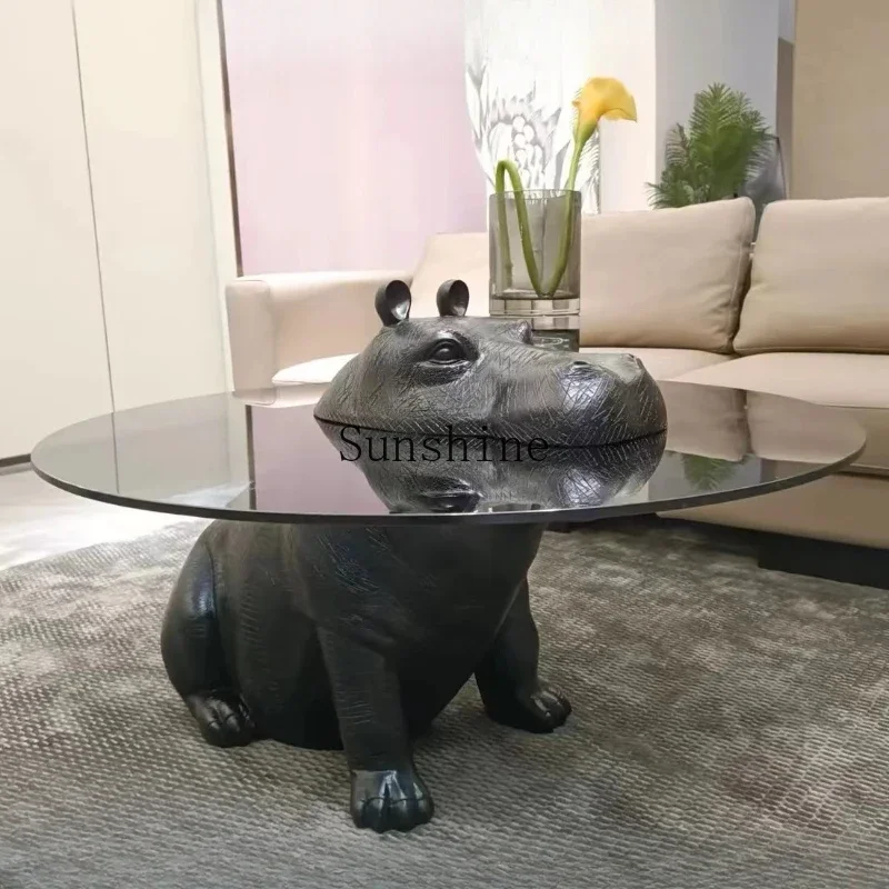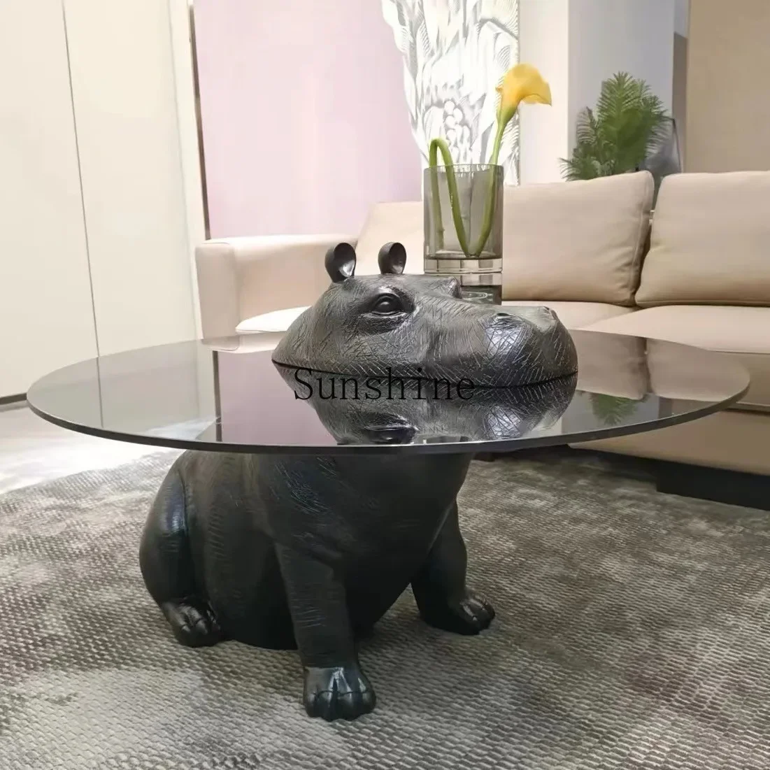 Hippo-Inspired Round Coffee Table – Tempered Glass, Italian High-End Minimalist Design with Creative Animal Sculpture