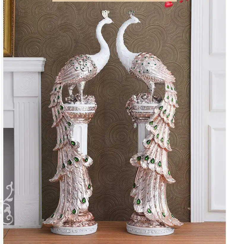 Luxury Resin Peacock Figurine – European Art Decor for Living Room & Office Table