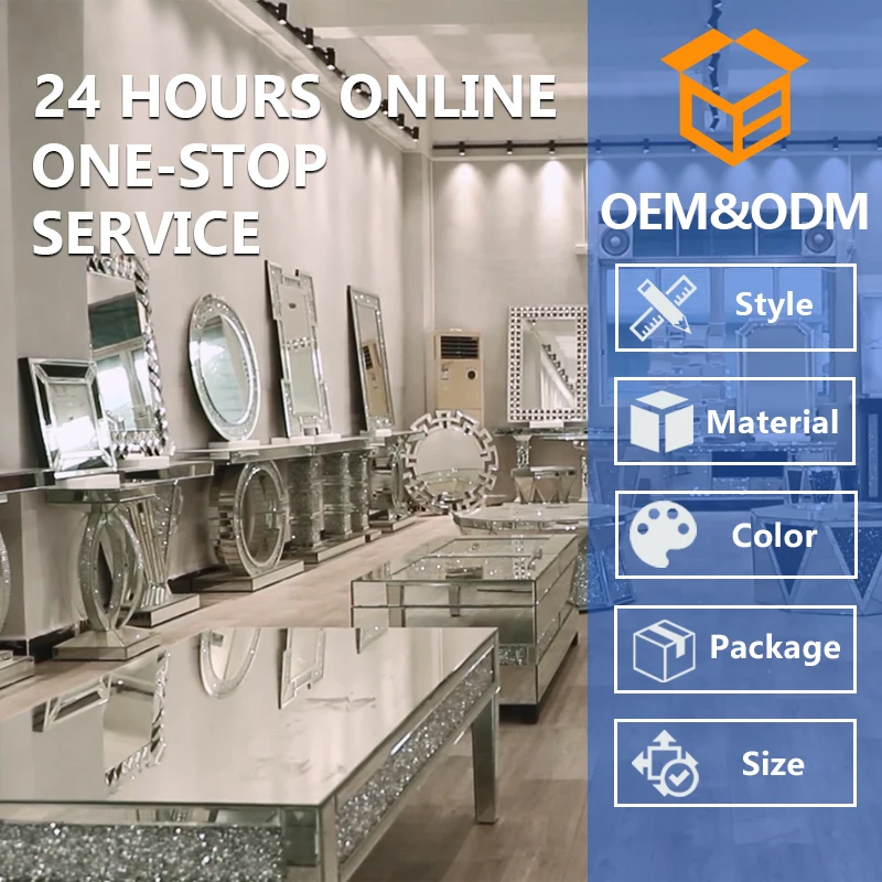 Luxury Square Mirrored Coffee Table – Transparent Hollow Design with Crushed Diamond Inlay for Modern Living Room Décor
