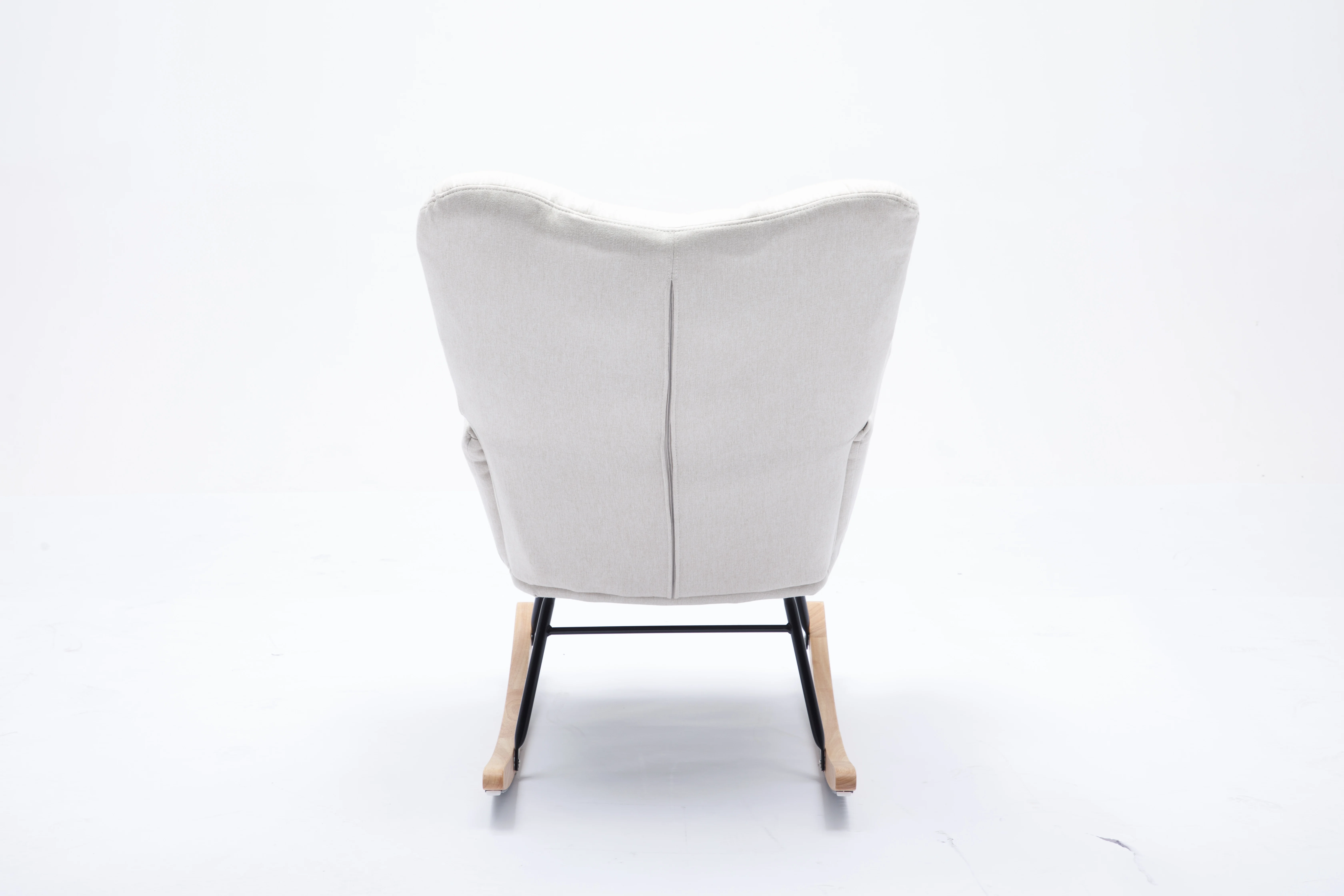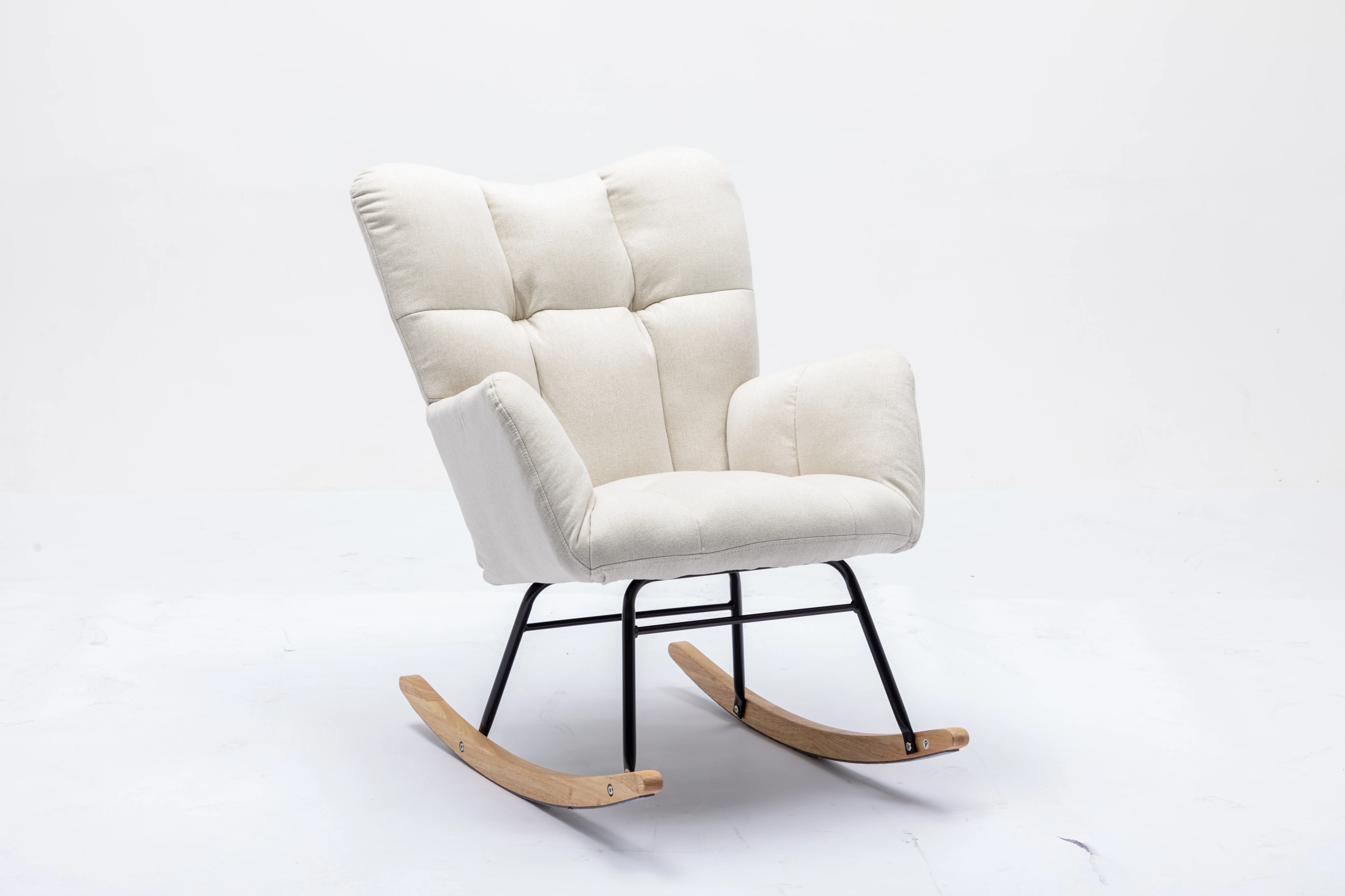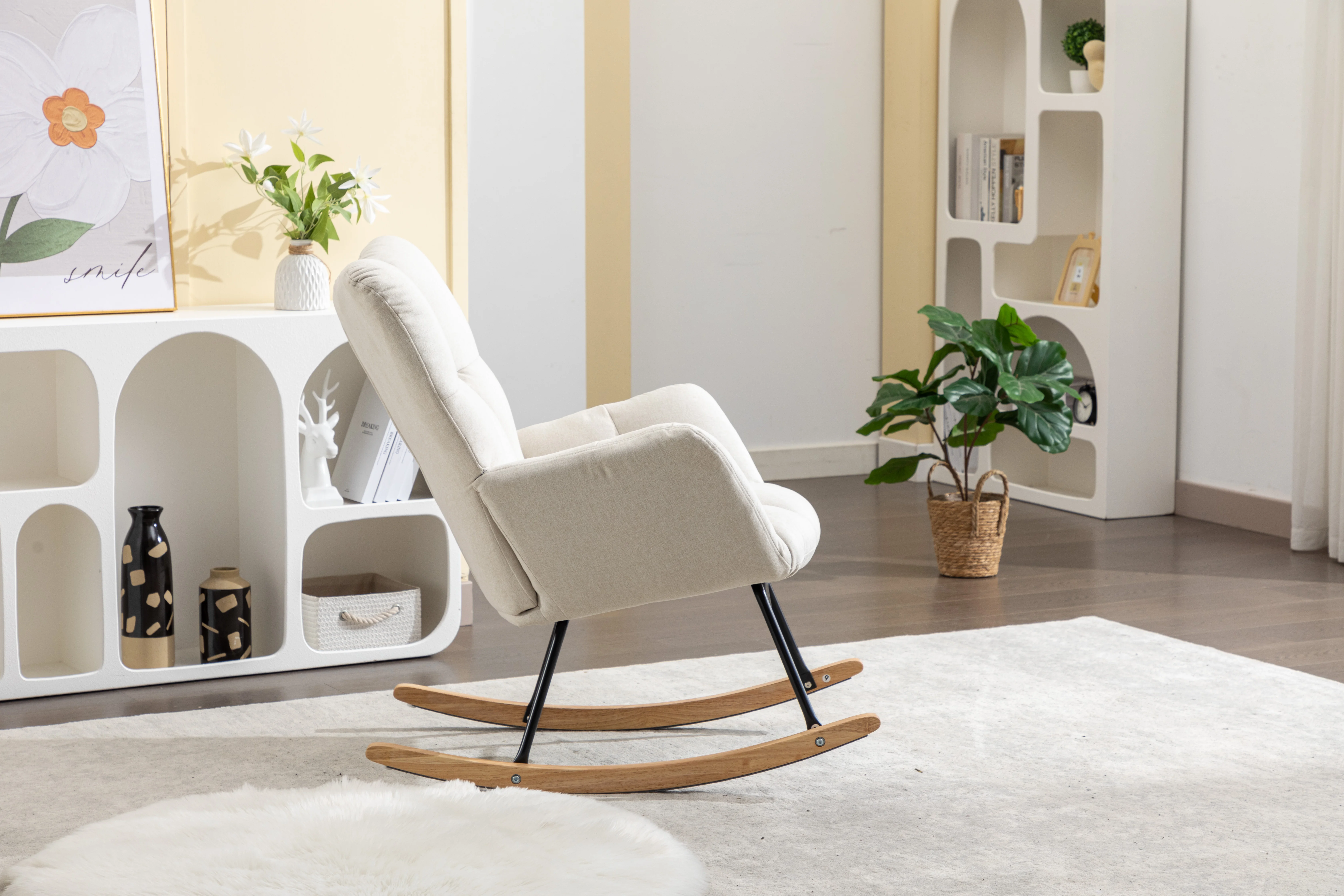 Mid Century Modern Flax Fabric Tufted Upholstered Rocking Chair, Padded Seat, Ivory