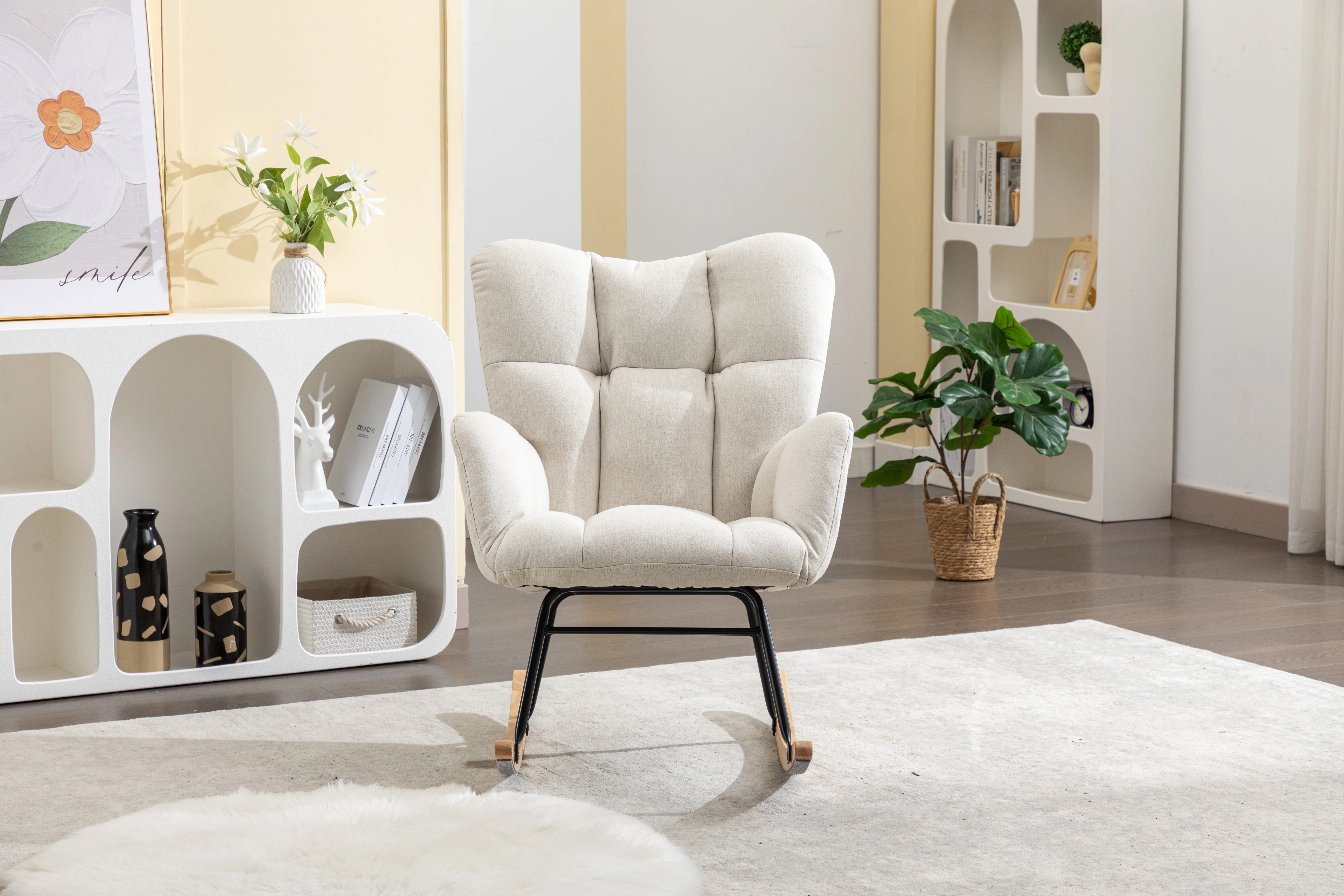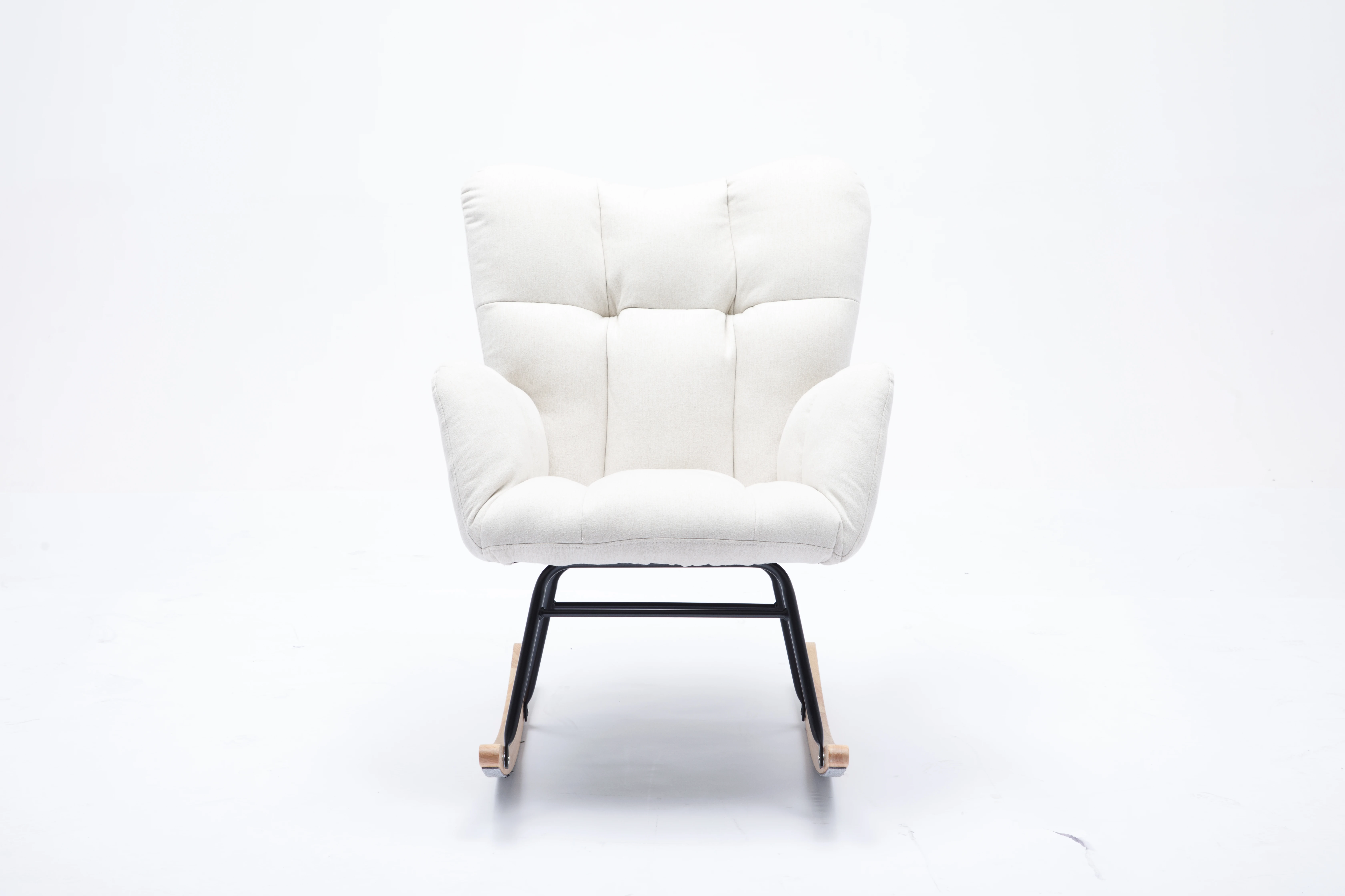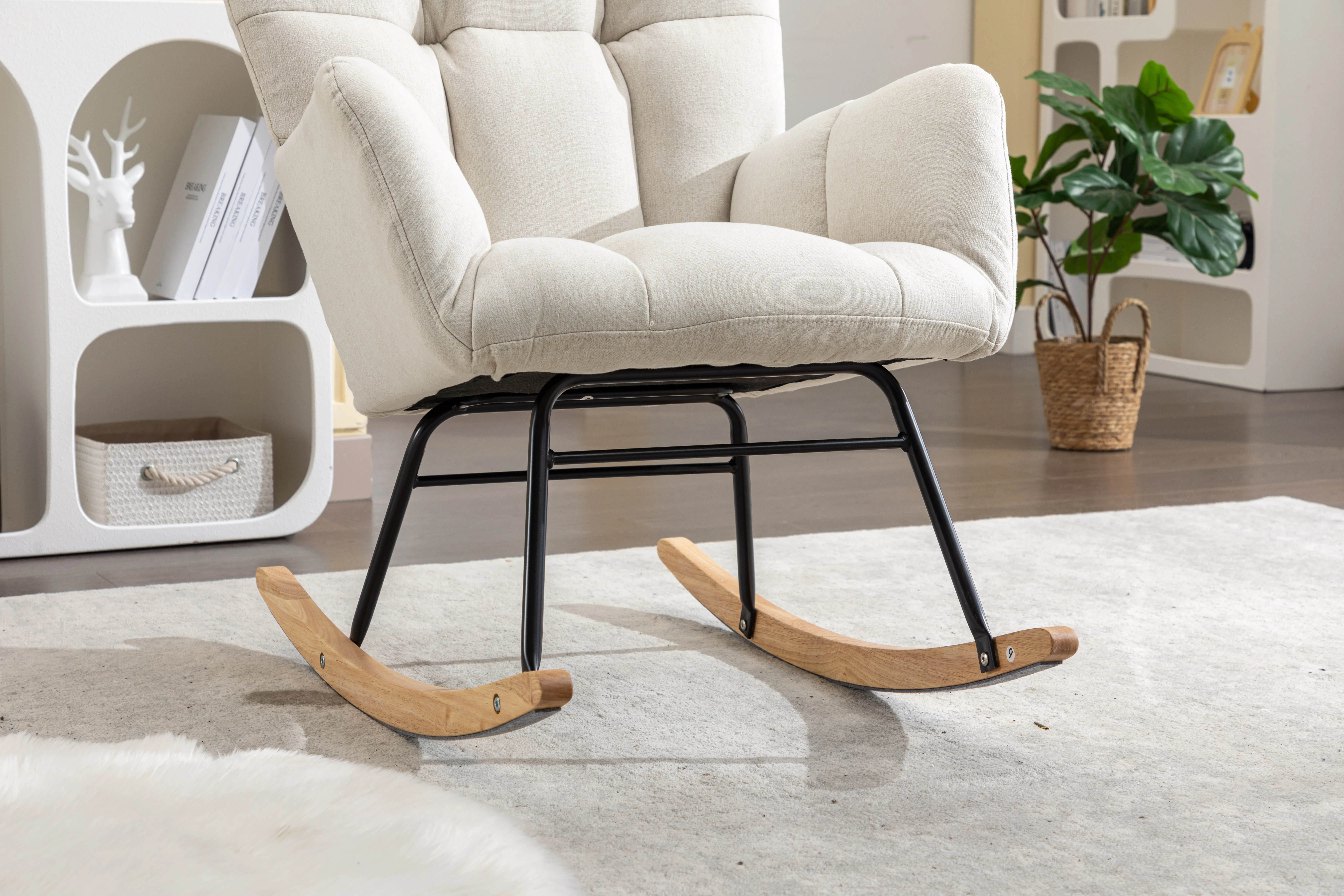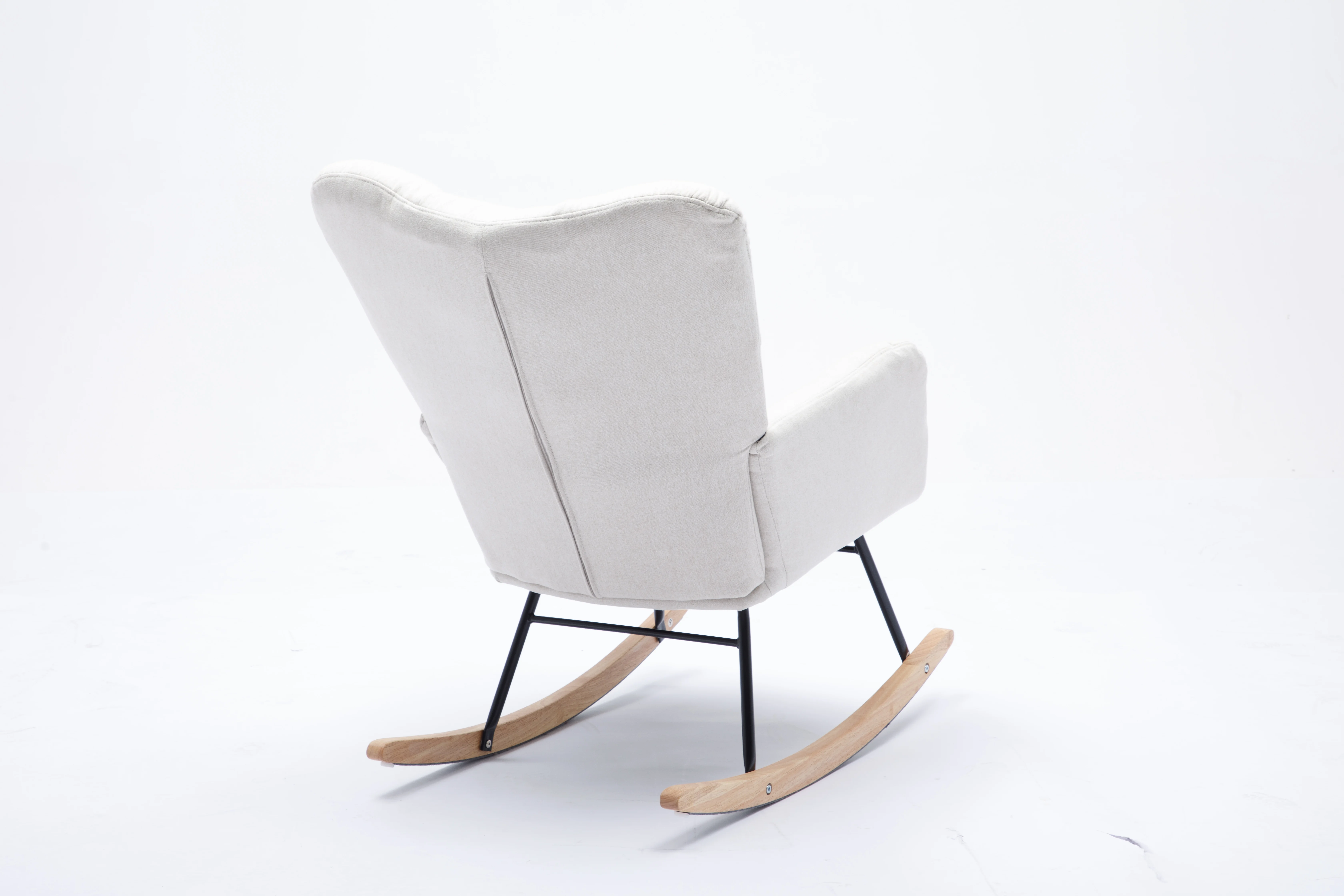 Mid Century Modern Flax Fabric Tufted Upholstered Rocking Chair, Padded Seat, Ivory