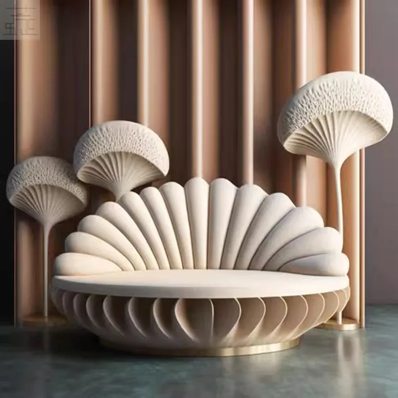 Modern Luxury Fiberglass Sofa – Avant-Garde 3D Fabric Designer Couch