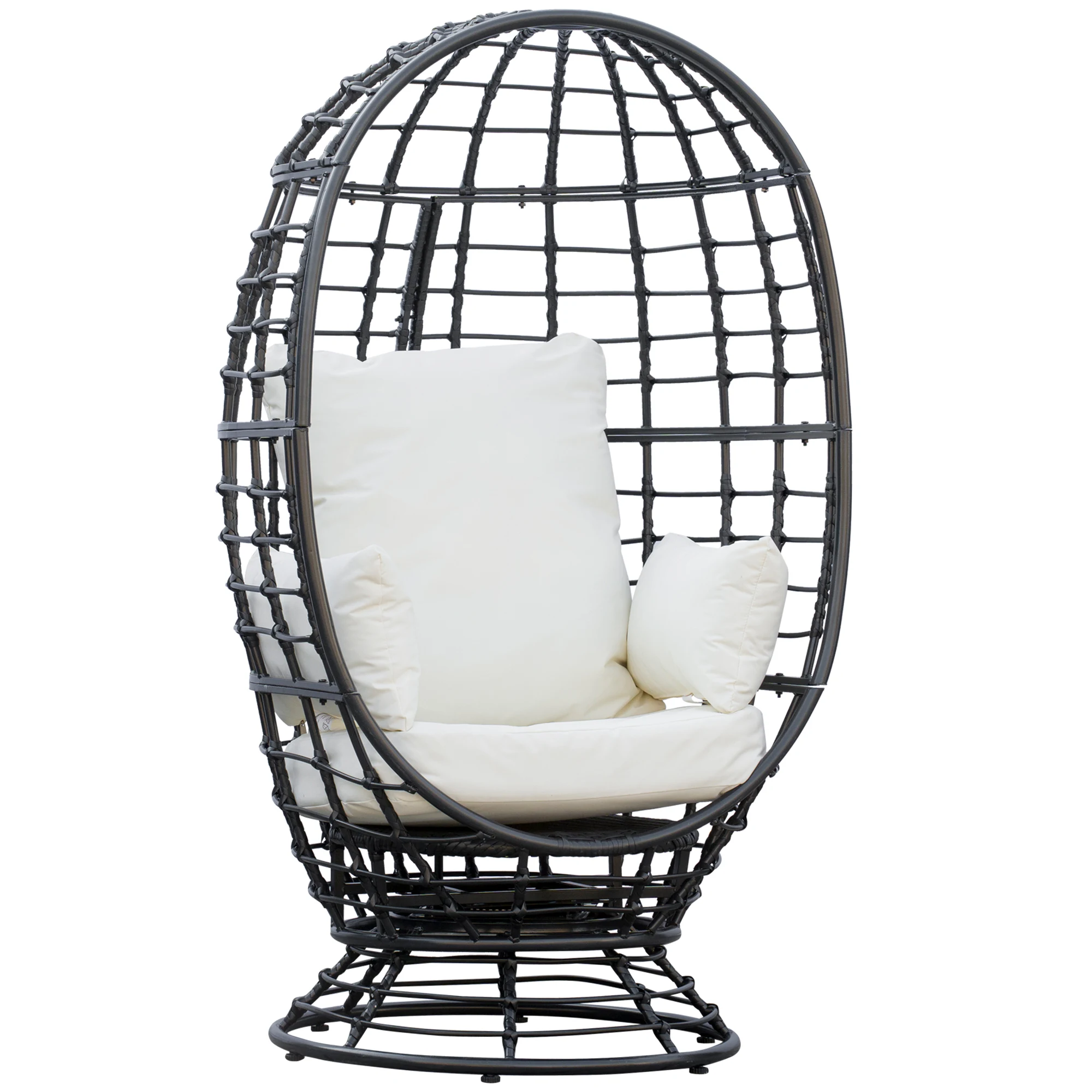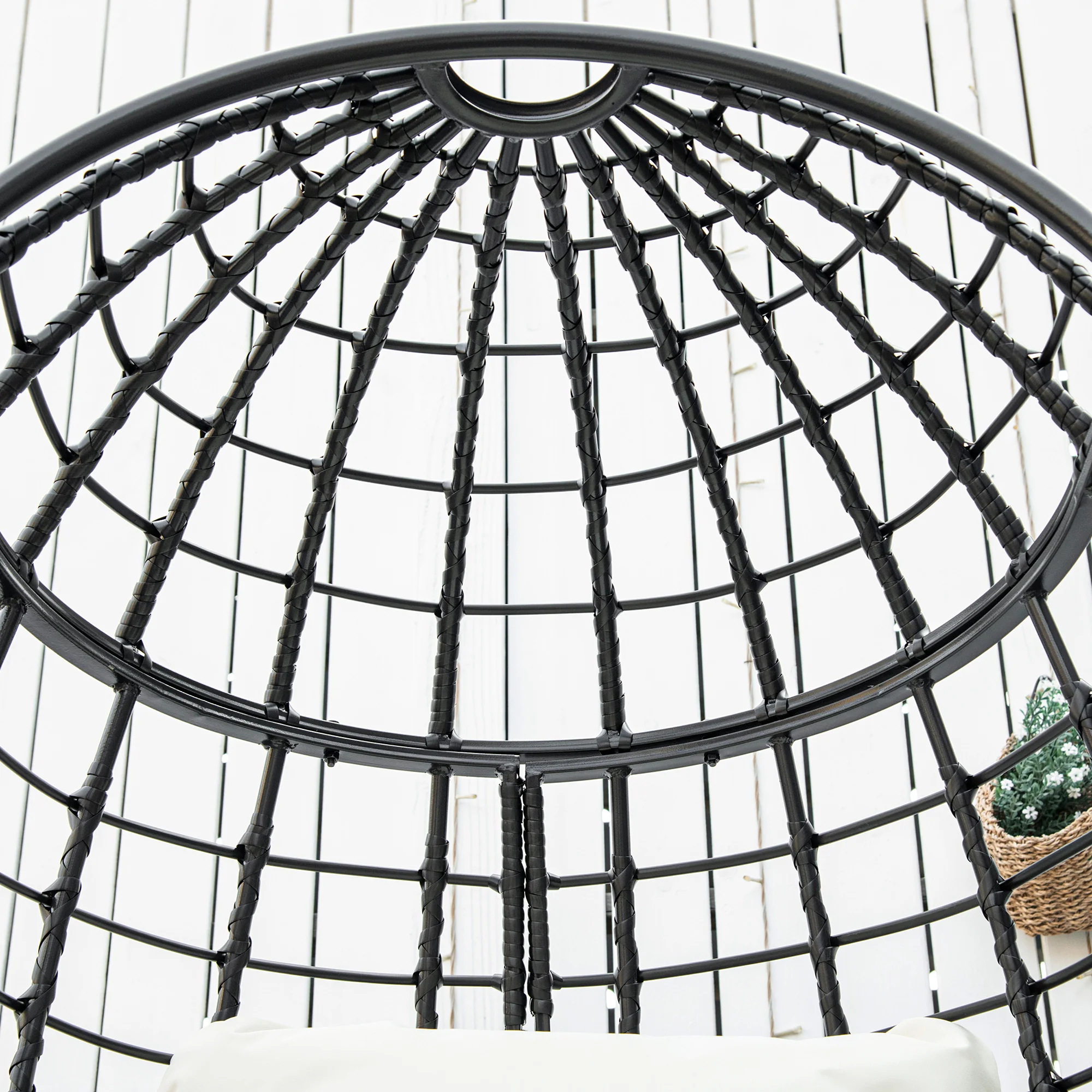 Swivel Rattan Egg Chair with Cushion and Pillow – Outdoor Hanging-Style Lounge Chair for Balcony, Garden, or Patio, Black
