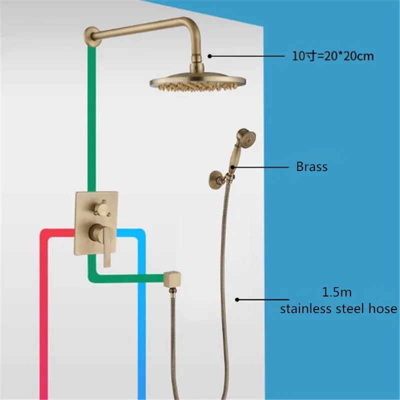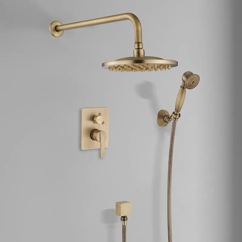 Tuqiu Brass Shower Set – Antique Wall-Mounted Faucet with 8-Inch Round Head