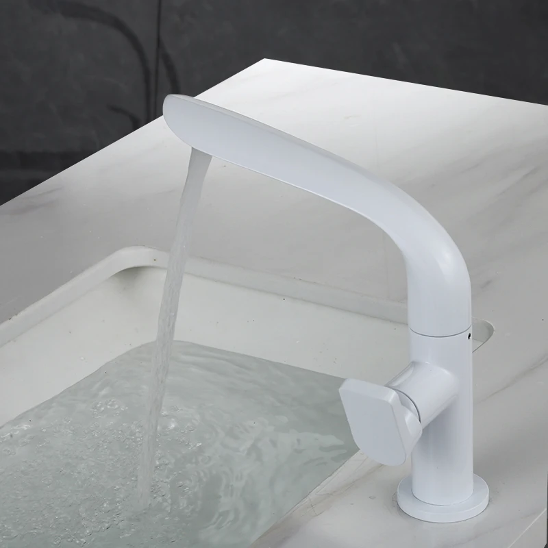 Tuqiu Brass Bathroom Basin Faucet – Modern Single Handle Mixer Tap for Hot & Cold Water, Chrome / White / Black Finish
