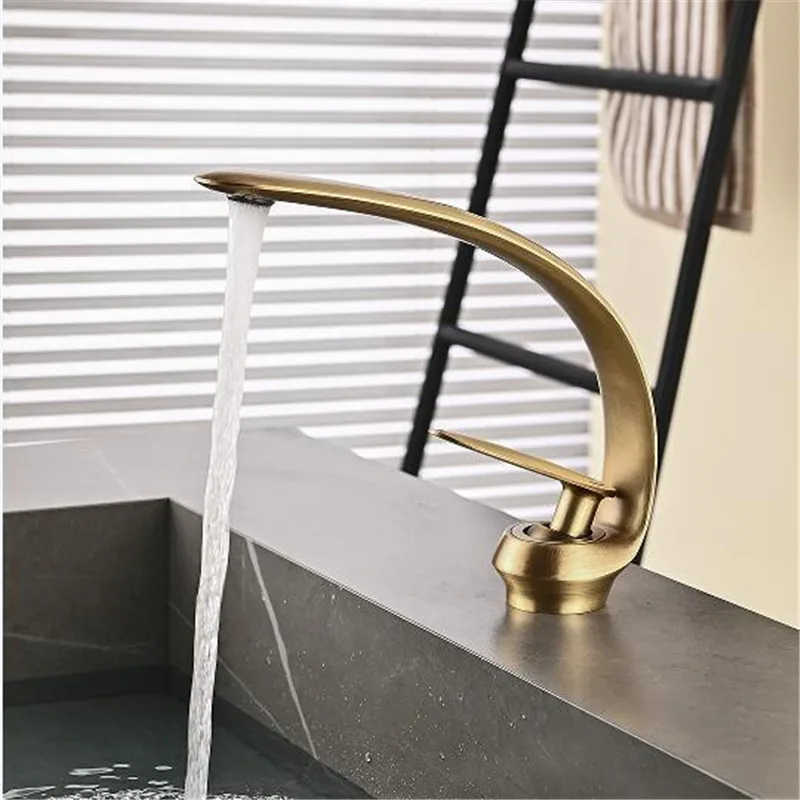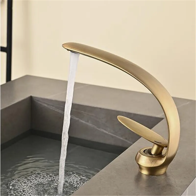Tuqiu Brass Bathroom Basin Faucet – Single Handle Mixer Tap with Hot & Cold Water, Contemporary Design in Black, Gold, or Rose Gold Finish
