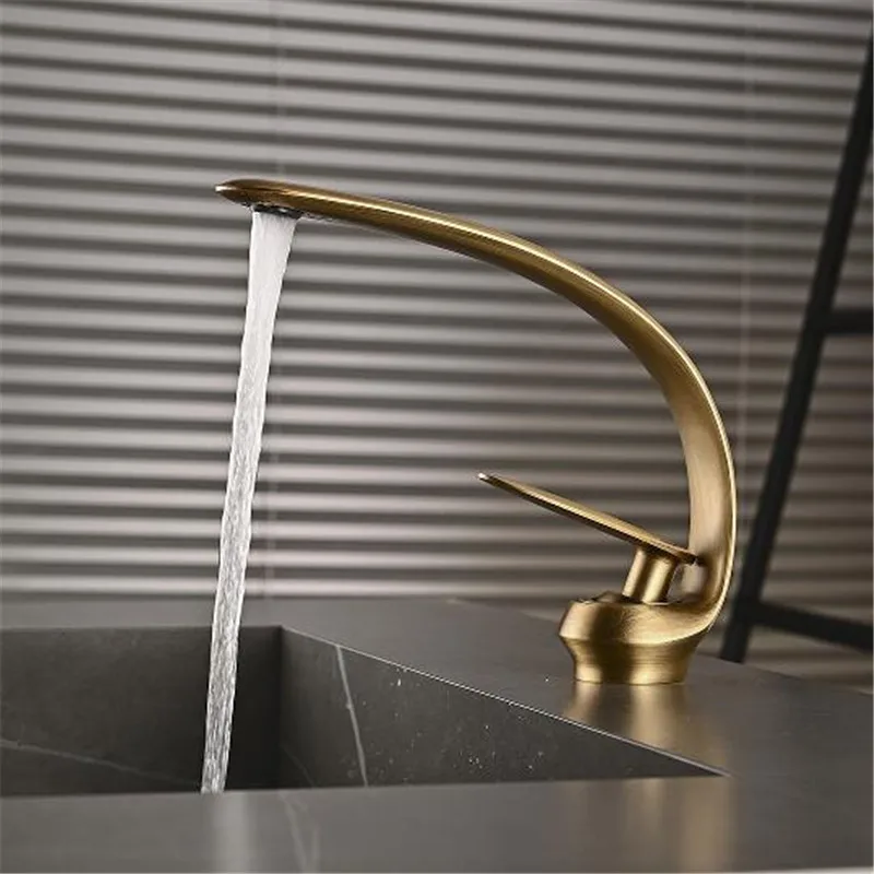 Tuqiu White & Gold Bathroom Faucet – Antique Brass Single Handle Mixer Tap