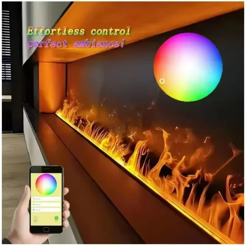 The water vapor fireplace is equipped with an intelligent automatic water system. It automatically stops filling when the tank is full and pauses operation when the water level is low. Both working time and settings can be easily managed via remote control or the mobile app, providing effortless convenience and smart home integration.